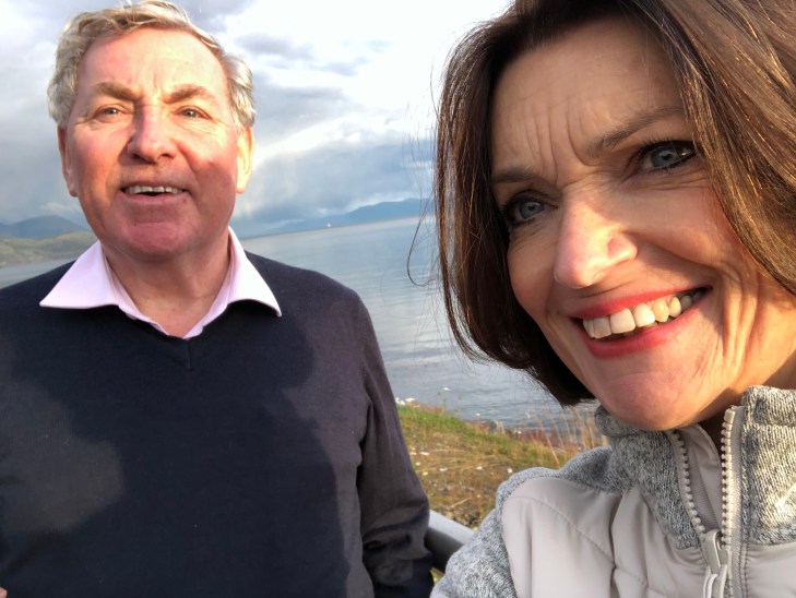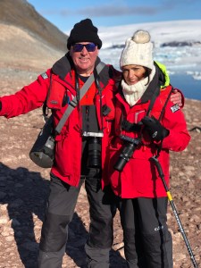 The end of the day was a great time to share photos or badger the experts. Jeremy and I had recently bought digital mirrorless cameras, equivalent to the old SLRs, but smaller bodied and more than able to do the same work. We had even done ‘Level One’ of a photography course at home. But to begin with, we both felt woefully challenged by their operation. There was much cursing in the marsh as our inexperienced fingers and thumbs fumbled over the buttons and changed a newly found precious setting. Indeed I was so cross one day I felt like stamping. Mercifully a lovely man called Euan (below, with his wife Nicola)