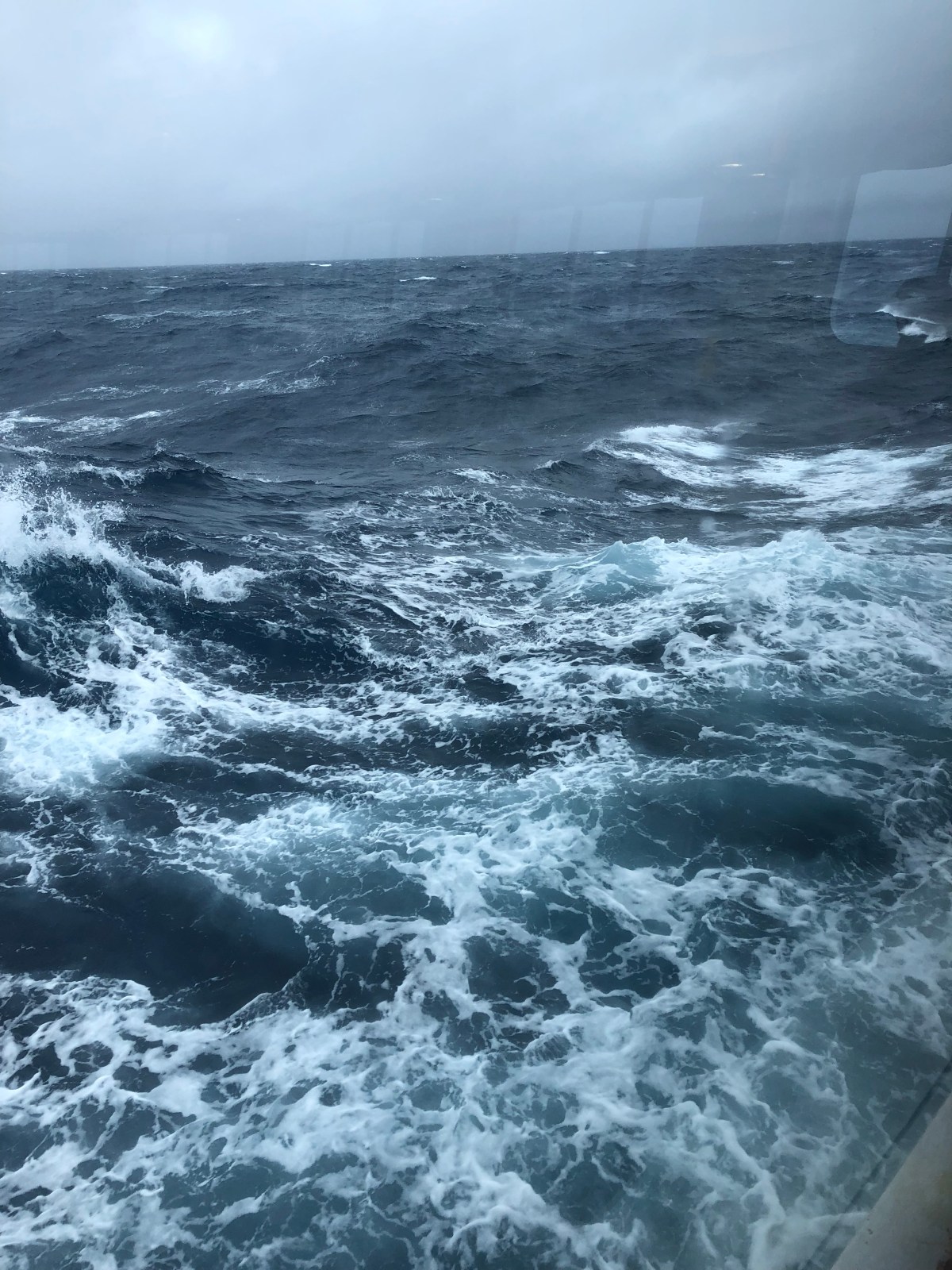 Sea sickness was certainly an issue for some. One’s sense of balance constantly has to adjust, because the floor is not always in the same place as it was last time. Many retreated to their cabins. I am blessed with many secret afflictions but I do have reasonable sea legs. My only symptom was a slight sleepiness or urge to get outside. It is important to keep blood sugars up by nibbling on dry biscuit or bread. On our first bit of ‘rough’, I went to check on my friend who was stuck in her cabin. Possibly fuelled by the wine at dinner, I thought I would try running down the corridors. With the floor coming at all angles, the centre of gravity kept changing, so I felt almost weightless. This proved to be great fun; a bit like flying. (Not for everyone, I realise).