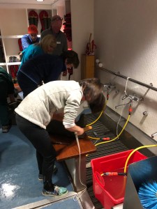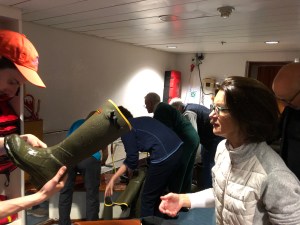 On our first day of ‘steaming’ (being at sea), we were inducted into the rules of biosecurity. In order to preserve the ecology of our landing sites, South Georgia and the Antarctic Peninsula in particular, we had to be rigorously schooled in properly scrubbing our gum boots, and remembering to give them a final dip in biocide. Then there was the removal of anything at all from our oilskins (Gills) that might carry ashore some contagion. Velcro patches on our kit had to be removed or closely picked over in case a single shred of white tissue or similar might have adhered. I think my boots were rejected three times before I passed muster. It was good training however, and soon we were merrily trading the wire brush for the hose when trying to get the best result and outsmart the Mud Room über führer.